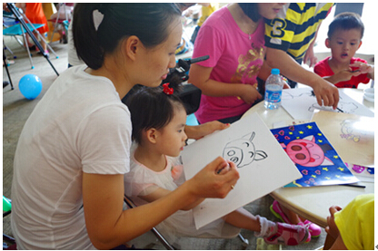 在家长和老师的帮助下,小朋友根据成品画开始创作自己的油画作品,虽然手上难免碰上颜料,但是小朋友们依然聚精会神地画画,一幅幅充满童趣的作品跃然纸上。经过1个多小时的创作,一幅幅精美的作品绽放在售楼处。