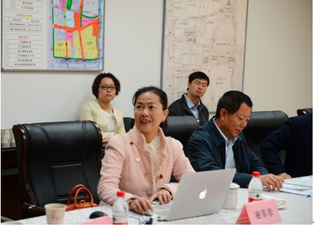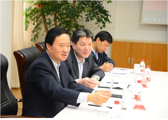 图4:闸北区委书记翁祖亮(左1)、闸北区常务副区长黄永平(左2)认真听取汇报并指导工作)