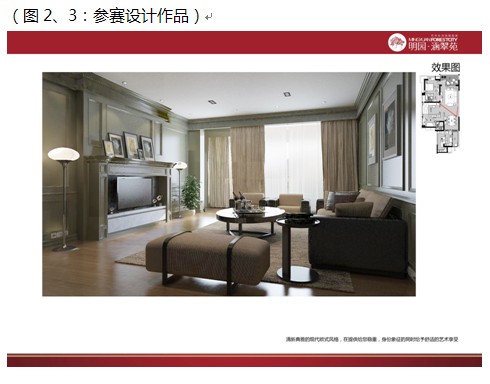 9月7日,由明园集团举办的“圆艺术人居梦想”明园空间设计大赛奖项在共和新路2999号明园涵翠苑售楼处隆重揭晓。届时2013年度明园涵翠苑“艺彩纷呈”年已成功举办了正月艺术家宴、艺彩画展,装修设计大赛三波活动。