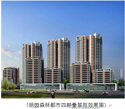 明园森林都市四期项目叠翠苑由3幢高层公寓、3栋小高层及沿街商铺组成,总用地面积55825平方米;可建地上总建筑面积116393平方米、地下总建筑面积24759平方米;容积率3.5;绿化率35%,集中绿化率10%。