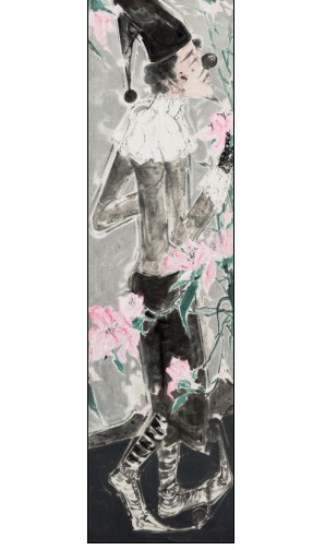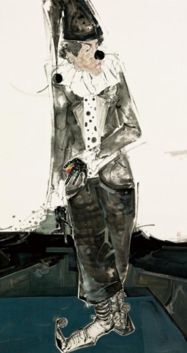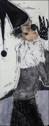 宗锡涛属于80后,是上海中国画院创作研究室主任、一级美术师、中国美术家协会会员,张培成老师的研究生,他也正致力于此类的学习与研究。他聪颖、刻苦,为了艺术会奋不顾身。他来自于山野,又是孔子的故乡,所以在他身上文野气息兼具。今年他画起了“小丑”系列。这或许与他的人生经历有关。一个人从农村出来打拼,在这个奇态百出的社会中,他会有更多的领悟与解读。当然以水墨来表达也不会有现成的词汇与词藻,他正在途中,但已显露出希望。去年在明圆的全国中青年画家的邀请展中拔得头筹,也引来各方的关注。这是他的起步,但这一步走的很精彩,但愿这只是起步,因为那边的风景很美妙,竟随步移,那边正需要你的独特,那边因你的独特而更显绚丽。那边是一个运动的概念,那便会变成这边,但永远有个那边。