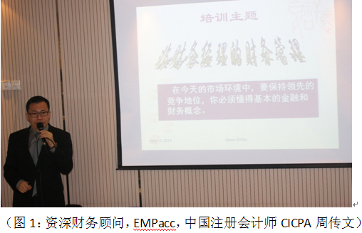 2014年4月13日为期一天的明园集团中层及骨干人员培训在公司总部举行,本次培训的主题为《非财务人员的财务管理》,培训讲师为资深财务顾问,EMPacc,中国注册会计师CICPA周传文,周老师先从财务会计基础与报表解读讲起,重点讲解如何看财务报告这一企业无声的语言,指出资产负债表和利润表的核心财务指标项目。然后讲解了财务运作体系与现金流管理,衡量公司最终的成功至关重要的是:公司的活动是否为所有者创造价值。