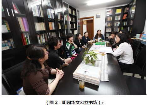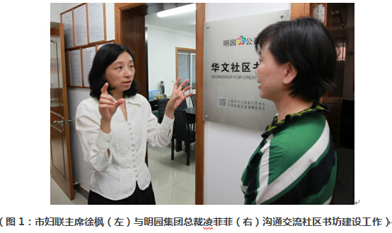 艺术文化进社区 明园公益尽心意--明园集团总裁凌菲菲向市妇联主席徐枫介绍明园公益?华文社区书坊建设工作